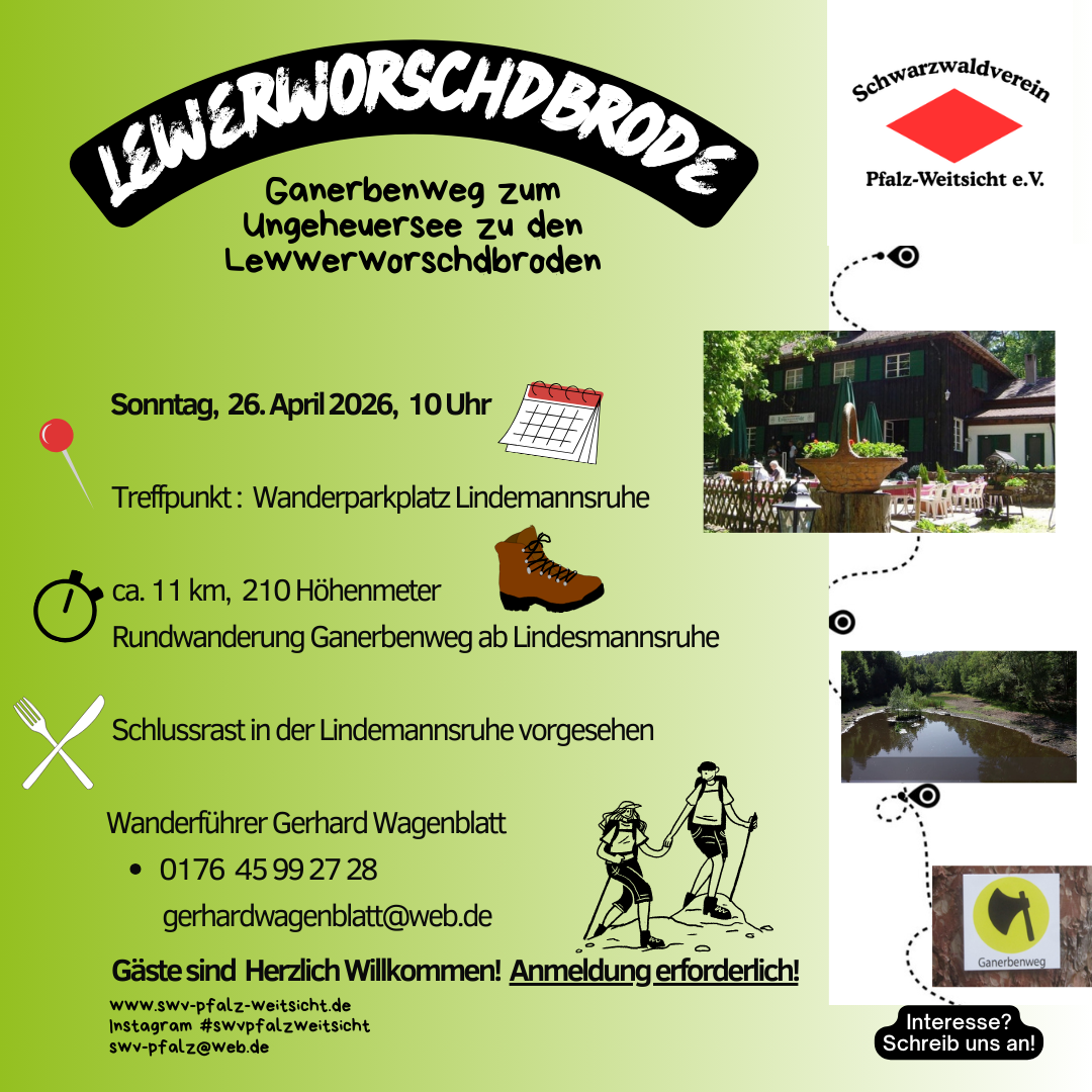 Tipp: Folge auch unserem Instagram-Account swvpfalzweitsicht. Oder lasse uns wissen, dass du in unseren Email-Verteiler oder die WhatsAPP-Gruppe „SWV Pfalz SPONTAN“ eingebunden werden willst. Erreiche uns unter swv-pfalz(at)web.de