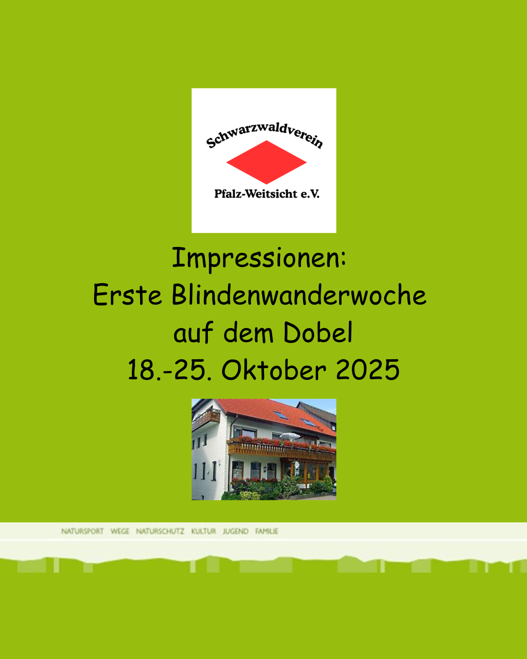 Auch in diesem Jahr fand im Reckweilerhof bei Wolfstein eine Wanderwoche für Blinde- und Sehbehinderte Menschen statt. Insgesamt 19 Teilnehmende mit Sehbeeinträchtigung (aus Deutschland und Österreich) wurden von 10 bis 16 ehrenamtlichen Begleitpersonen unterstützt. Täglich standen Wanderungen zwischen 9 und 15 Kilometern auf dem Programm – stets mit viel Herz, Hilfsbereitschaft und gemeinsamer Freude an der Bewegung und Begegnung.