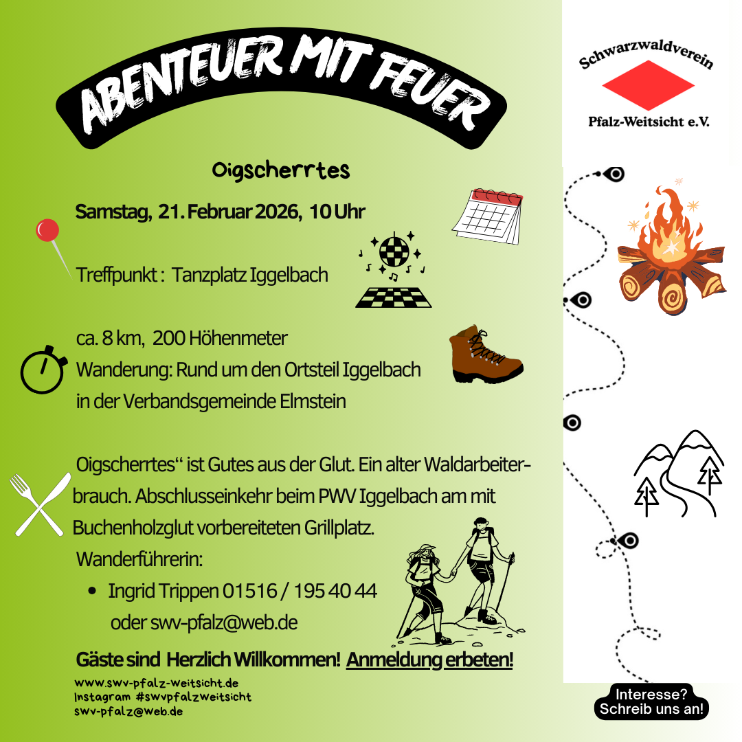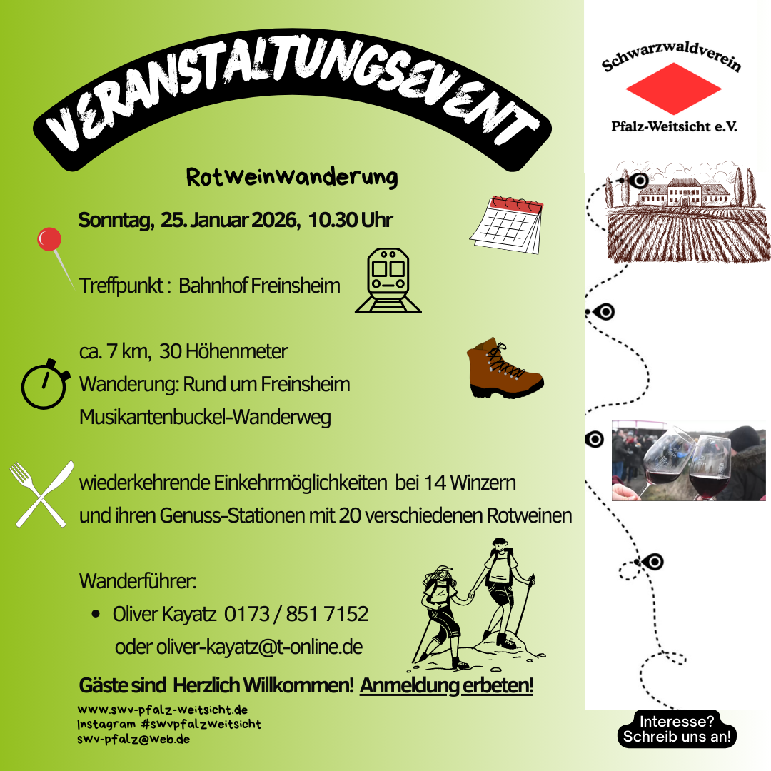 Die Wanderung ist auf 20 Personen begrenzt. Deshalb ist die Anmeldung bei Gabi Martin unbedingt erforderlich.