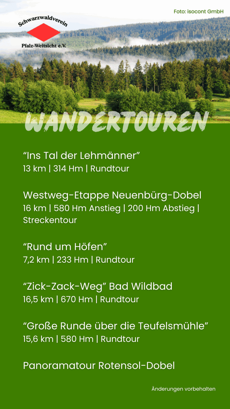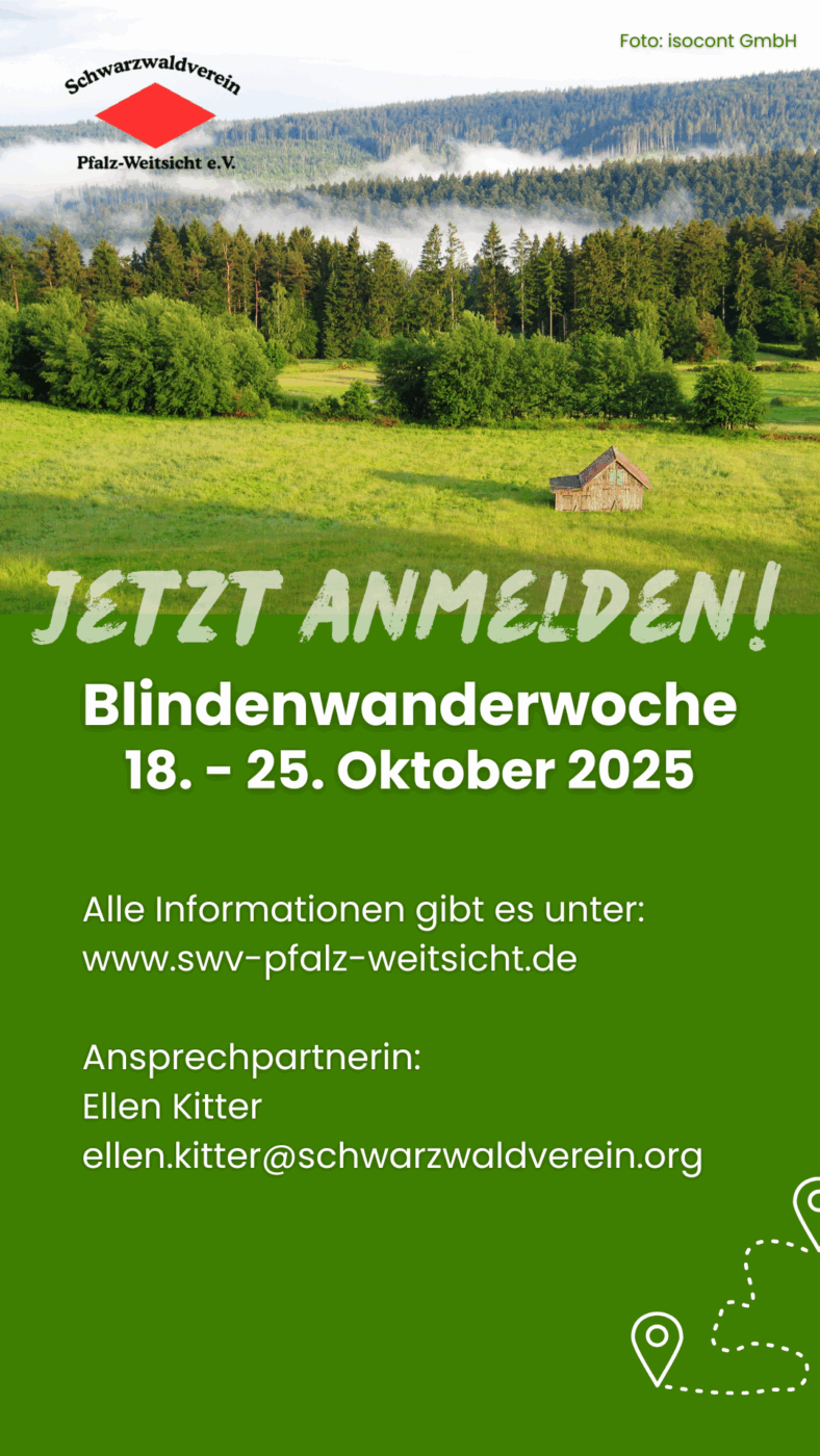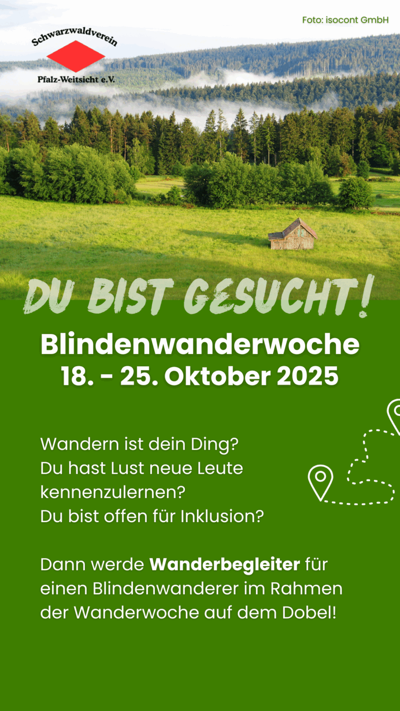 Für 2025 wurden insgesamt drei Blindenwanderwochen geplant. Zum ersten Mal auch eine Woche mit Standort auf dem Dobel. Von Dobel, um Dobel und Umland wurden Wanderungen ausgewählt.